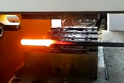可用于中大型長桿類鍛件的局部鐓粗、沖孔、塑形,在礦山機械工具、石油機械、鐵路基建等領(lǐng)域應用廣泛,如抽油桿、礦山釬桿、鐵路道叉等。